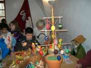 Téměř všechny děti si zkusily také vyrobit něco vlastníma rukama za pomoci instruktorů. Některé zdobily vyfoukaná slepicí vajíčka voskem, jiné tvarovaly svýma malýma rukama z keramické hlíny zajíčky, ptáčky či kuřata a ty méně zručné alespoň vázaly mašle. Ani po hodině se jim nechtělo odejít, ale musely uvolnit prostor svým starším kolegům žákům základní školy. Po cestě slibovaly, že přijdou odpoledne, kdy jsou dílny a výstava otevřené pro veřejnost, znovu se svými rodiči. A mnohé svůj slib splnily. Odpoledne se na zámku dveře netrhly.